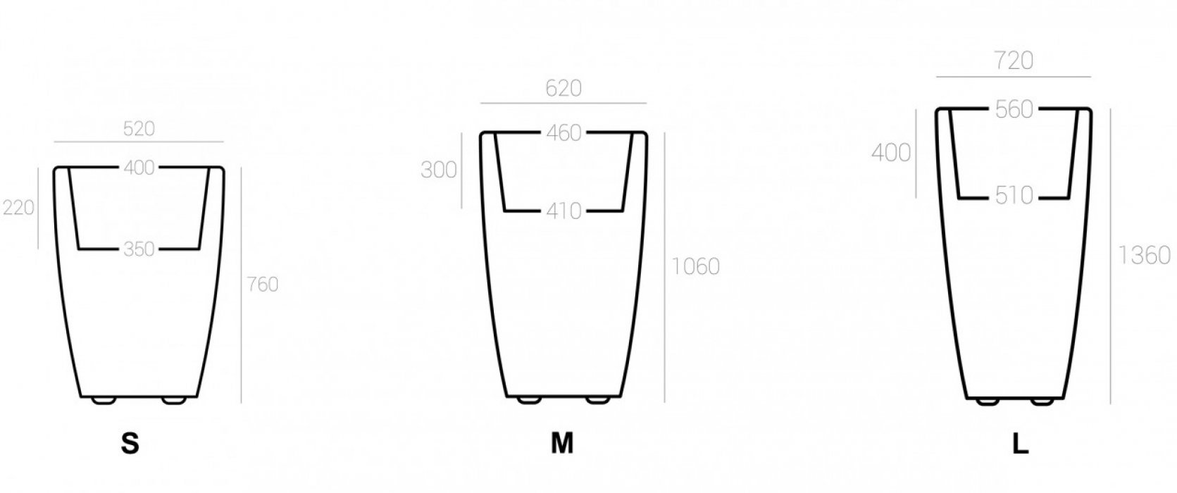 Кашпо Linea имеет устойчивое прямоугольное основание и хорошо стоит на ровных поверхностях. При установке на сыпучий или мягкий грунт желательно докупить ландшафтные крепления.