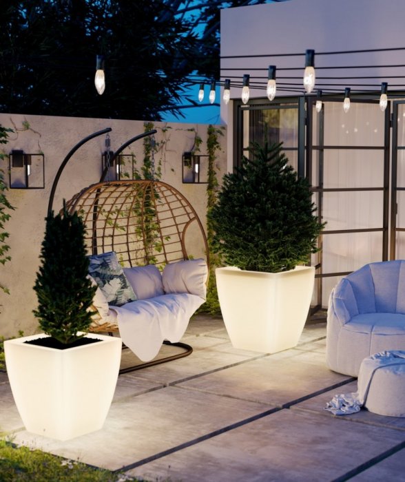 Кашпо Linea со светодиодной подсветкой изготовлено из полиэтилена низкого давления по стандарту защиты IP 65. Подсветка исходит от светодиодного элемента в нижней части корпуса и равномерно рассеивается через полупрозрачный пластик. Все электронные компоненты надежно защищены от влаги и пыли благодаря полной герметичности.