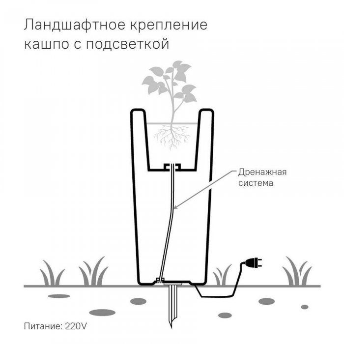 Цена указана за кашпо в стандартной комплектации без крепления и дренажа, подсветка белая от сети (220V).